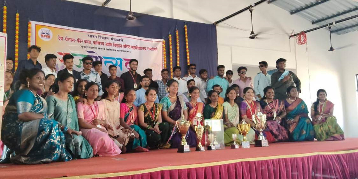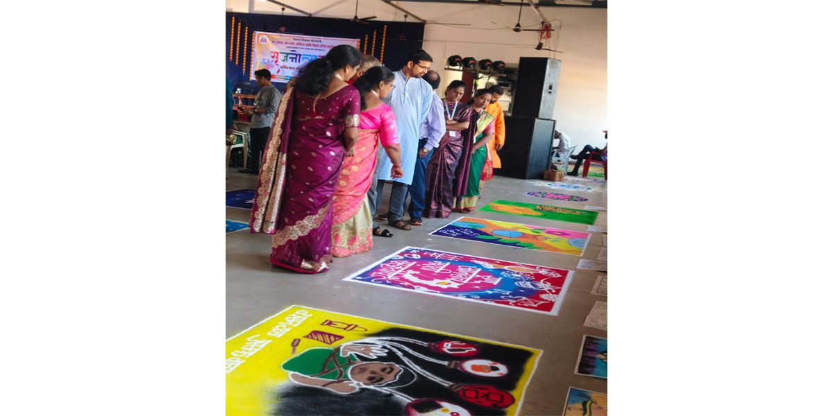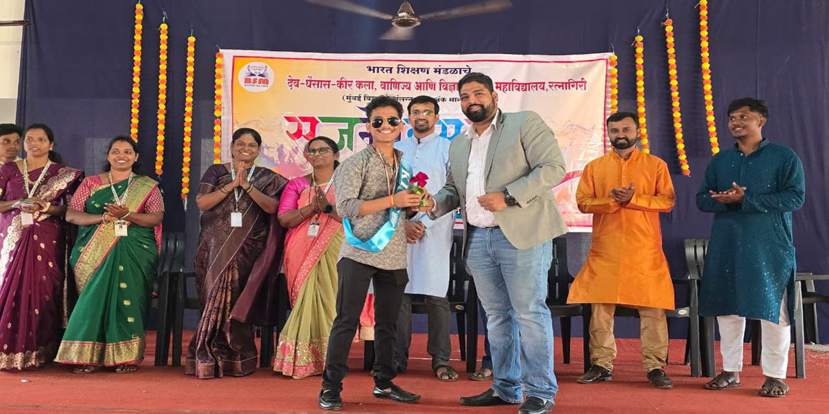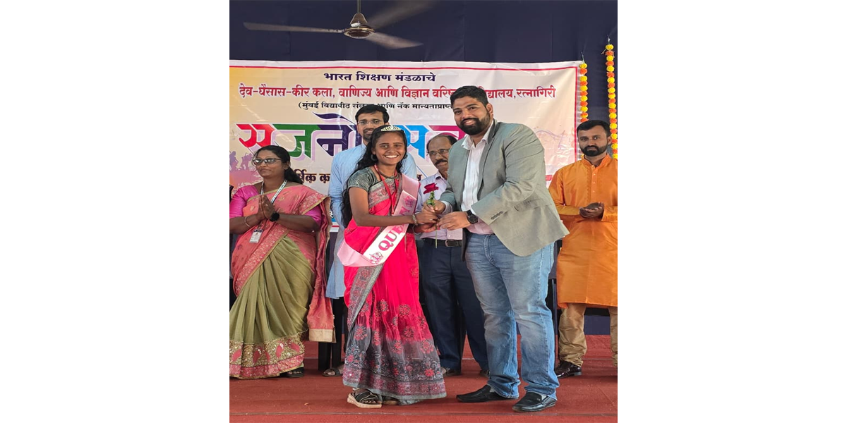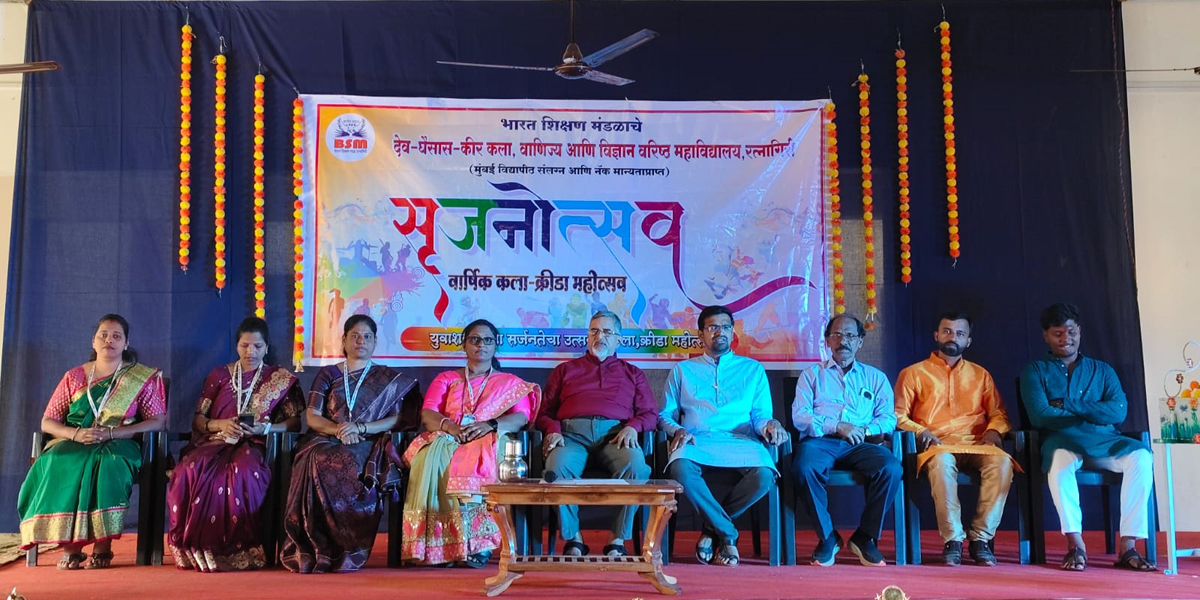 सृजनोत्सव २०२५-२६ रांगोळी प्रदर्शन पाहताना मान्यवर भारत शिक्षण मंडळ संस्थेचे कार्याध्यक्ष श्री.श्रीराम भावे, कार्यवाह श्री. धनेश रायकर, सदस्य श्री.विनायक हातखंबकर महाविद्यालयाच्या प्रभारी प्राचार्या मधुरा पाटील, उपप्राचार्य वसुंधरा जाधव,सांस्कृतिक विभाग प्रमुख ऋतुजा भोवड, क्रीडा विभाग प्रमुख वैभव घाणेकर, वाणिज्य शाखा प्रमुख राखी जाधव, महाविद्यालयाचा GS कु. दुर्गेश जाधव